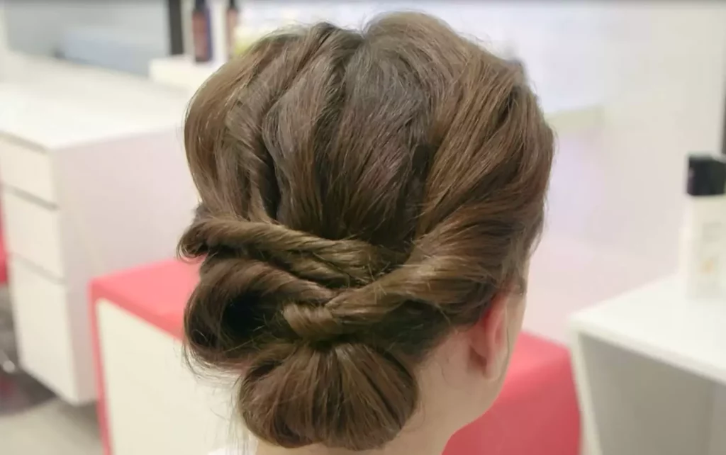 Cette coiffure sophistiquée ne prend que 5 minutes à réaliser. Divisez vos cheveux en deux sections, torsadez-les, puis enroulez-les en forme de 8. Fixez avec des épingles intelligentes qui s’adaptent à la couleur de vos cheveux. L’utilisation d’un spray fixateur à la kératine assure une tenue longue durée tout en nourrissant vos cheveux.