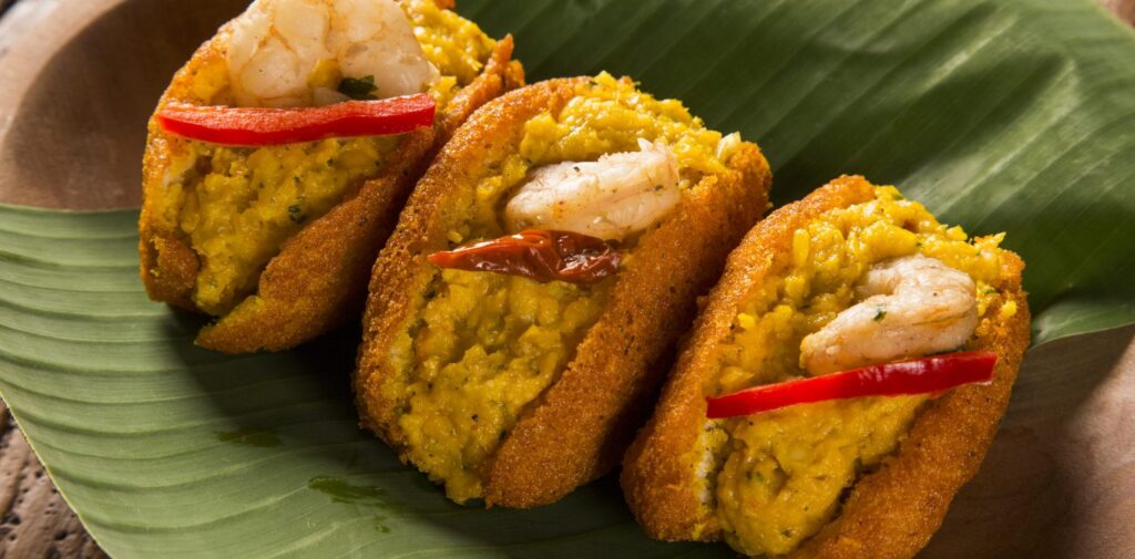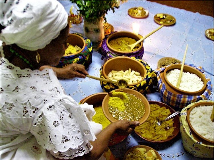 Au cœur de cette cuisine, on trouve l’acarajé, beignet de haricots frits garni de vatapá (pâte de crevettes, de noix de cajou et d’arachides) et de caruru (ragoût d’okra). Ce plat emblématique, vendu traditionnellement par les Baianas en costume traditionnel dans les rues de Salvador, est désormais proposé dans les restaurants gastronomiques de Paris, New York ou Tokyo.